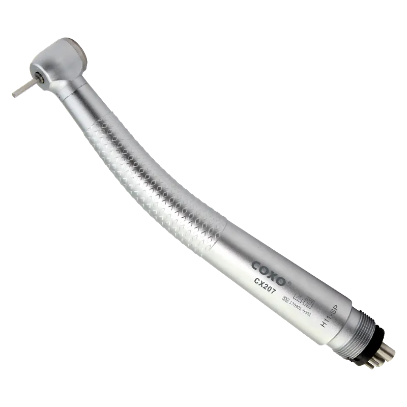 Стальной корпус 1-точечный спрей Кнопочный зажим бора Максимальная скорость вращения - 350 000 об/мин Уровень шума - менее 65 дБ Рабочее давление: 0,22 Мпа — 0,24 мПа Диаметр хвостовика боров 1.59-1.6 мм 4-х канальный |