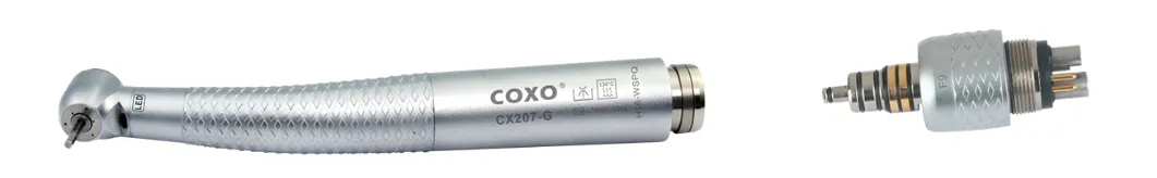 Цельнолитая головка: высокая стабильность работы Подшипники производства Япония : длительный срок службы, низкий уровень шума 3-х точечный спрей 3-х точечная подача воздуха Система нативсасывания Пылеустойчивая конструкция головки LED подсветка (фиброоптика) Элегантный дизайн сации бора: кнопочныйй зажим Уровень шума: ≤ 70дБ Давление воздуха: 0,25 - 0,28 МПа Тип бора: диаметр 1,59 - 1,6 Скорость вращения: ≥ 300 000 об/мин Мощность диода: 1 Вт Усиленная головка |