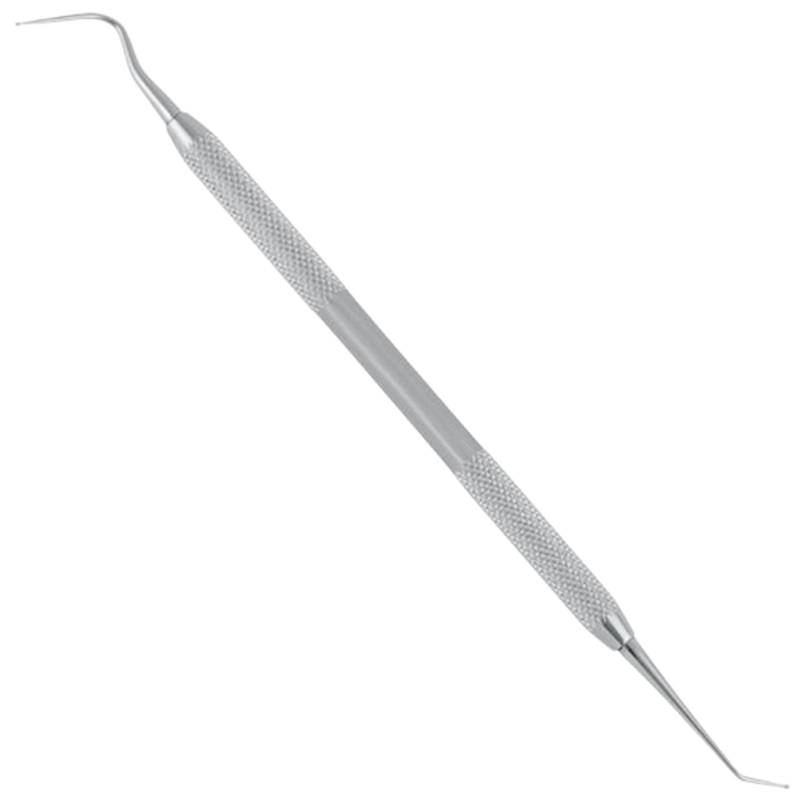 Изготовлен из нержавеюещй стали. Инструмент двухсторонний. Диаметр рабочей части с обеих сторон - 0,8 мм. С одной стороны рабочая часть удлинена Ручка круглого профиля На ручке инструмента крестообразные насечки для легкого уудержания в руке |