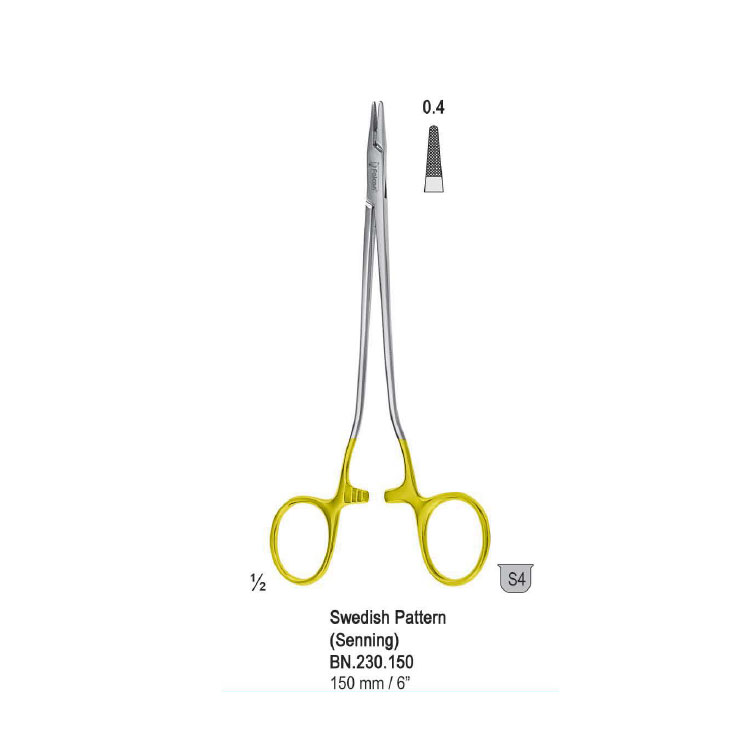 Изготовлен из нержавеющей стали Поверхности рабочих частей имеют мелкие крестообразные насечки Рабочие части выполнены из карбида вольфрама Фиксирующие кольца рукоятки и кремальера позолочены длина инструмента 150 мм Короткие рабочие части |