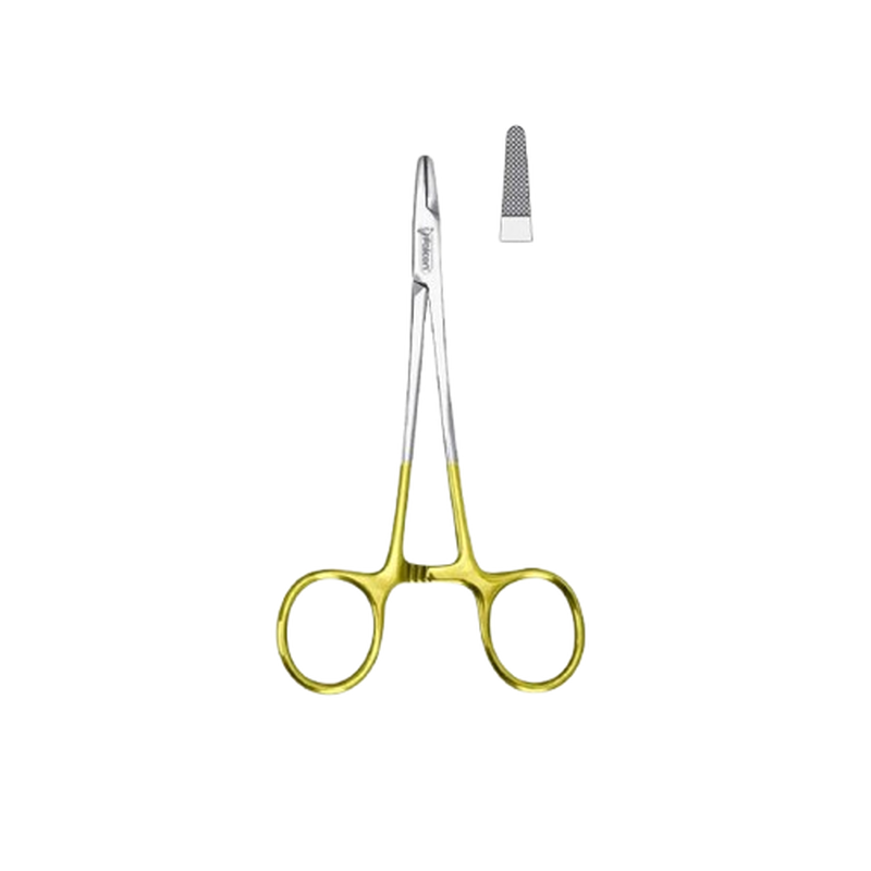 | Прямой иглодержатель. Общая длина 145 мм. Тип насечек 0,5 Standard. Используются для нитей 3/0. Рабочие части изготовлены из карбида вольфрама. |