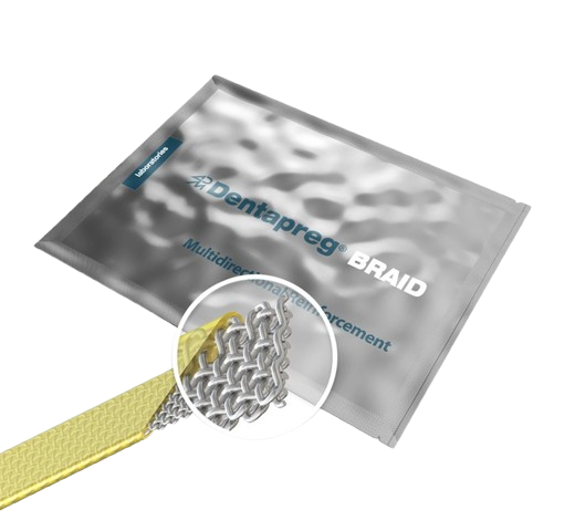Преимпрегнированные стекловолоконные армирующие ленты Лента BRAID - плетеное волокно (сетка) Инновационное решение: малоинвазивный быстрый метод изготовления адгезивного мостовидного протеза Высокая эстетика Лента совместима с любыми композитами и адгезивными системами Простое использование: лента не требует применения специального оборудования и аксессуаров Упаковка расчитана ориентировочно на 20 единиц АМП |