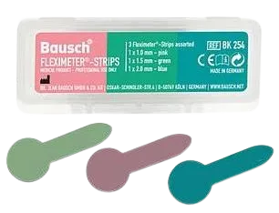 | Весьма практичной инновацией в работе стоматолога и зубного техника являются гибкие¶измерительные полоски (Fleximeter-Strips). Эти гибкие измерительные полоски трех различных¶толщин применяются для измерения уровня подготовленности при шлифовке зубов и зубных¶протезов или их реставрации (например, коронок, мостовых протезов или двойных коронок).¶Толщина полосок составляет 1,0 мм, 1,5 мм и 2,0 мм, поэтому они могут также использоваться для¶определения и измерения вертикальных зазоров (в прикусе). Полоски изготовлены из¶специального силикона, который можно стерилизовать при температуре до 200°C.¶На гибкие измерительные полоски Fleximeter Strips можно нанести также слой индикатора Arti-¶Spot® или спрей Arti-Spray®. Таким образом, при проверке препараций Вам окажется доступным¶практичный индикатор, который помогает определить недостаточный уровень подготовленности¶обрабатываемого места посредством появления цветных пятен на местах контакта в прикусе. |