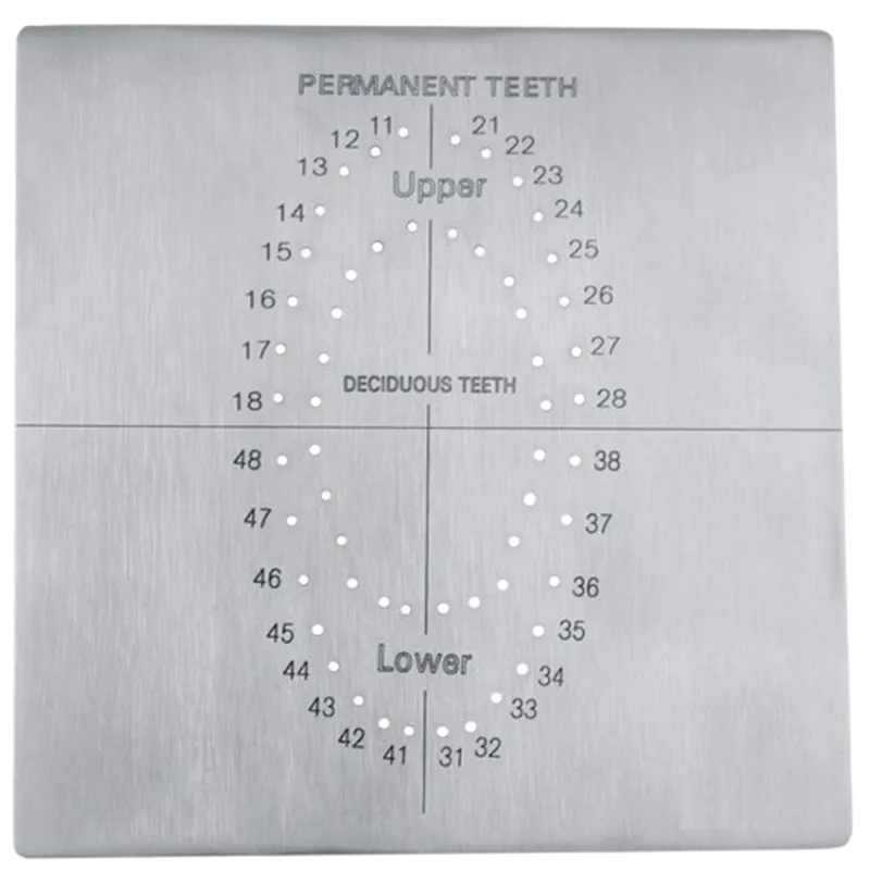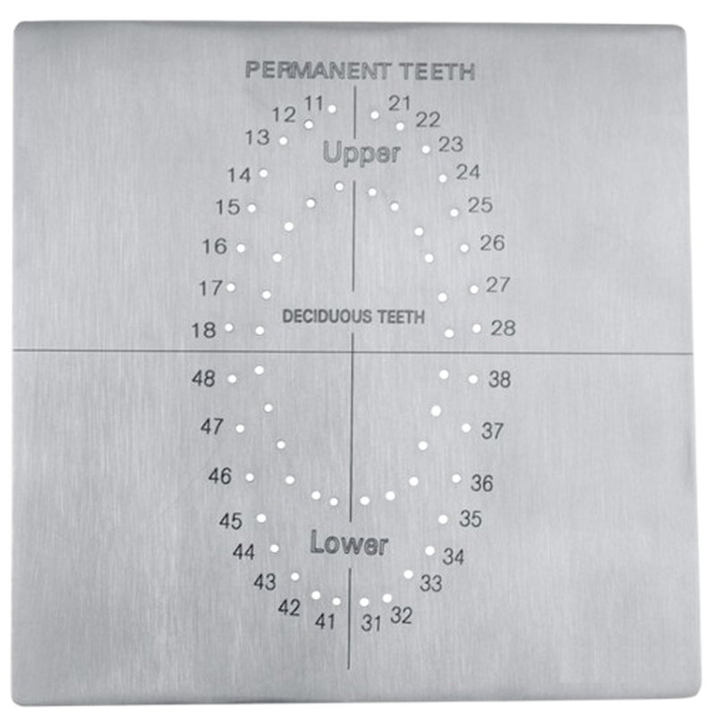 Изготовлен из нержавеющей стали Облегчает разметку отверстий Возможна разметка для постоянных и молочных зубов |