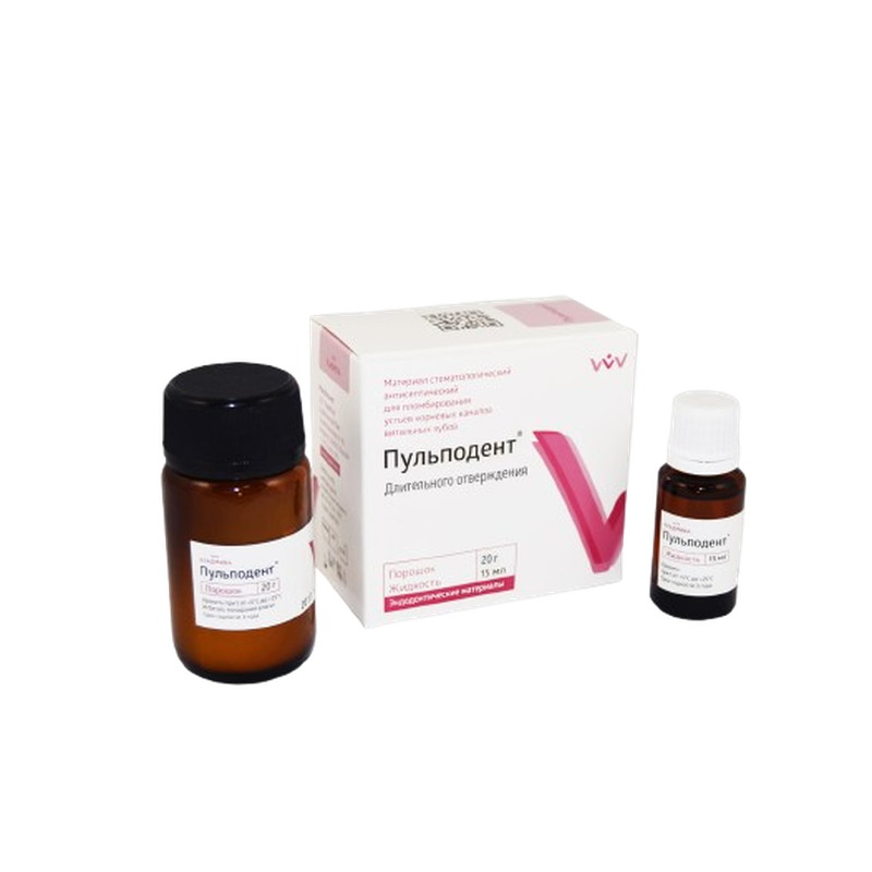 - Лечение пульпитов витальных временных и постоянных зубов с несформированными корнями. - Лечение острого очагового и хронического фиброзного пульпита с сохранением жизнеспособной корневой пульпы. - Лечение инфицированных временных моляров методом пульпотомии. - Лечение пульпитов постоянных зубов перед протезированием. Лечение пульпитов после витальной ампутации пульпы постоянных неправильно расположенных зубов (вестибулярный наклон коронки), а также зубов с искривленными труднодоступными каналами (с целью проведения полноценного эндодонтического лечения. Материал Пульподент длительного отверждения предназначен для постоянного пломбирования инфицированных корневых каналов. Применяется при лечении апикальных периодонтитов (в частности, при наличии гранулемы) после экстирпации пульпы. |