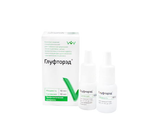 Глубокое фторирование глуфторэдом обеспечивает более длительную и эффективную защиту от кариеса Кристаллы фтористого кальция обеспечивают длительную реминерализацию твердых тканей Соединения меди эффективно защищают твердые ткани зубов от кариесогенных факторов Глубокое фторирование не препятствует адгезии и ретенции реставрационных и пломбировочных материалов |