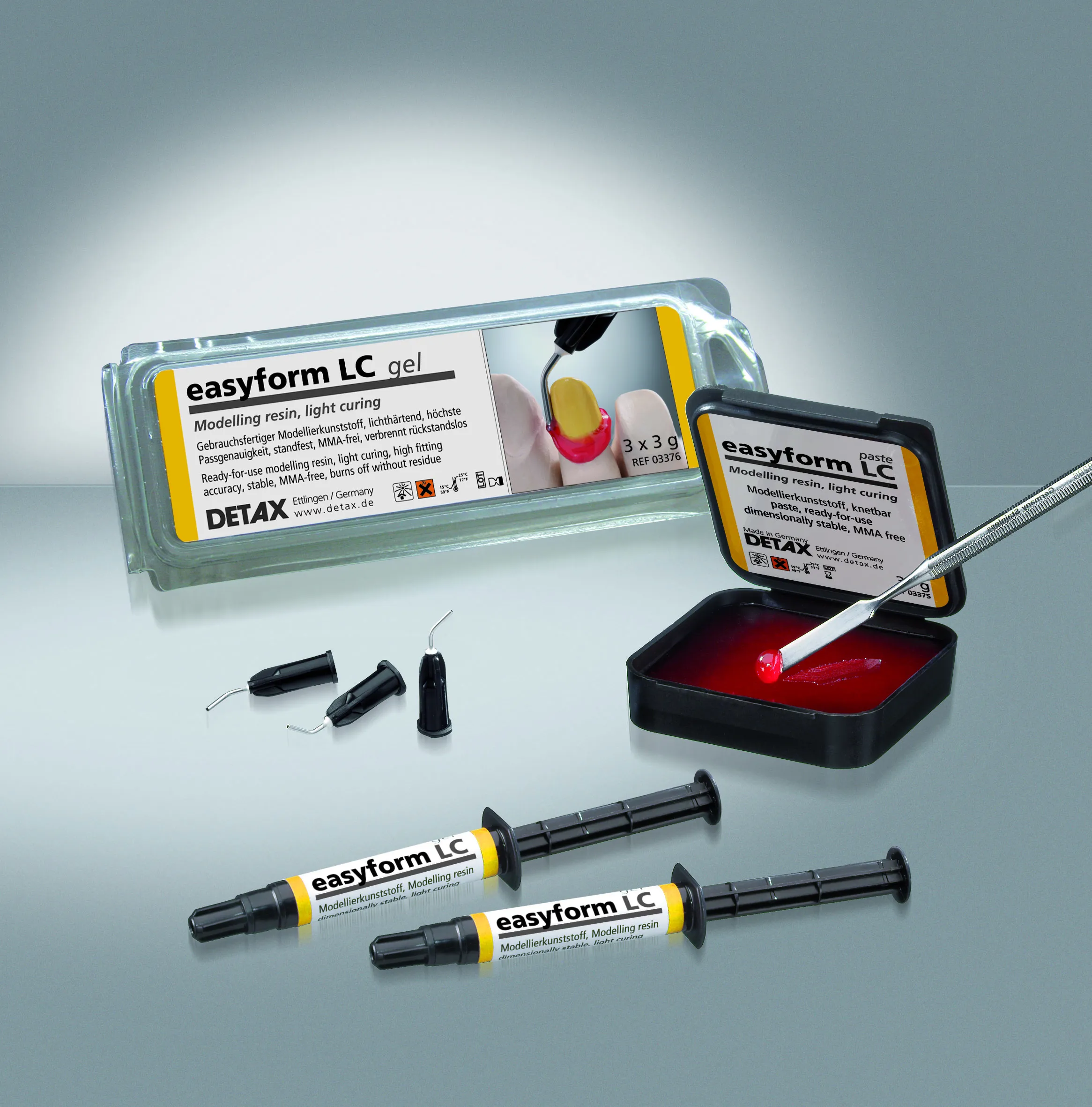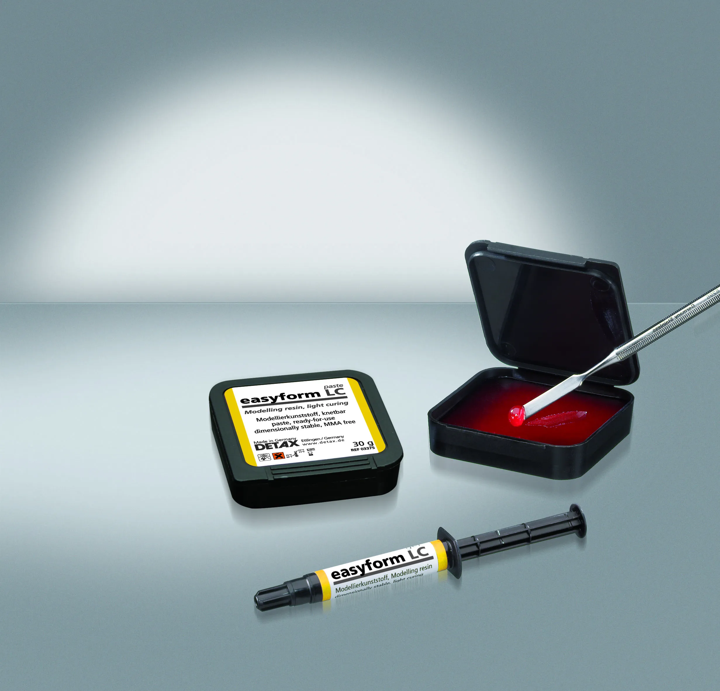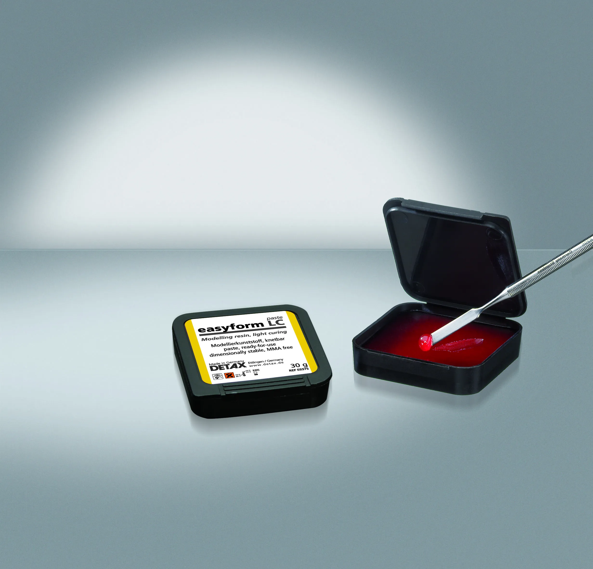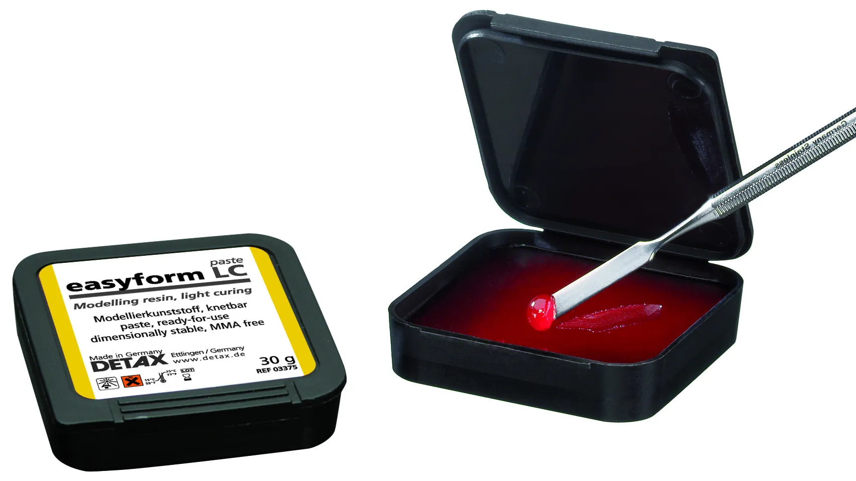 Готовая к применению светоотверждаемая моделировочная пластмасса в форме геля или пасты, не содержит метилметакрилата. Высокая точность для широкого спектра показаний, особенно для техники отливки форм. Выгорает беззольно, даже при большой толщине слоя. Согласованные между собой вязкости геля и пасты для быстрой и точной работы. Стабильность размеров, никакой деформации после полимеризации, высокая конечная твердость и стабильность. Может сочетаться с обычными или светоотверждаемыми восками. Визуальный контроль толщины слоев благодаря легкой полупрозрачности. Цвет – красный. Гель: прямое нанесение из дозировочного шприца, стабильный, хорошо моделируется. Паста: пластичная консистенция, легко формуется и моделируется. |