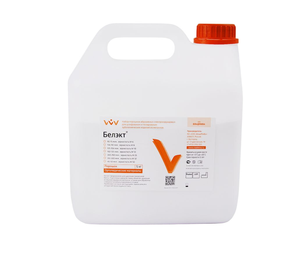 Белэкт представляет собой белый порошок на основе электрокорунда с высоким содержанием окиси алюминия (99,5%), не вызывающий силикоз (т.к. не содержит окись кремния). Абразивные частицы порошка уступают по твердости только алмазу, обеспечивают прекрасную поверхностную обработку, в ходе которой дробятся и, таким образом сохраняют острые края в процессе всей обработки. 90-75 мкм зернистость №6 ля удаления паковочной массы, подготовки каркасов и создания механических ретенционных поверхностей перед обжигом. |