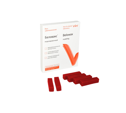 Основными компонентами являются парафин, церезин, натуральные и синтетические смолы, модификаторы и красители Воск имеет хорошие пластические свойства (текучесть под нагрузкой в интервале температур (37-45), обладает малой тепловой усадкой, легко моделируется зуботехническими инструментами, не изменяет своих свойств при неоднократном расплавлении При выгорании зольность воска моделировочного не превышает 0,02 % |