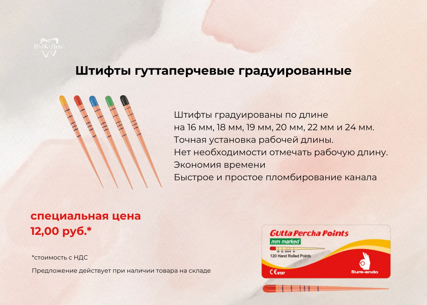 Штифты гуттаперчевые градуированные SureDent Corporation по специальной цене!